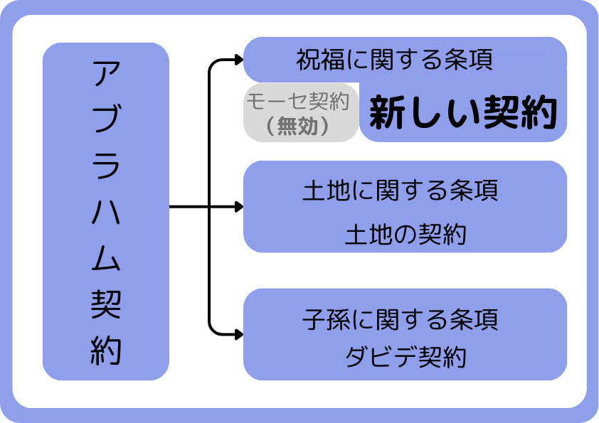 そして「新しい契約」は、アブラハム契約の中の「祝福に関する条項」が、別の契約として結ばれたものです。